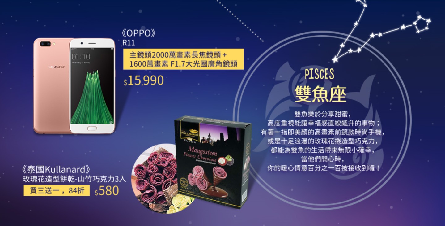 雙魚座:OPPO R11、 玫瑰花造型餅乾