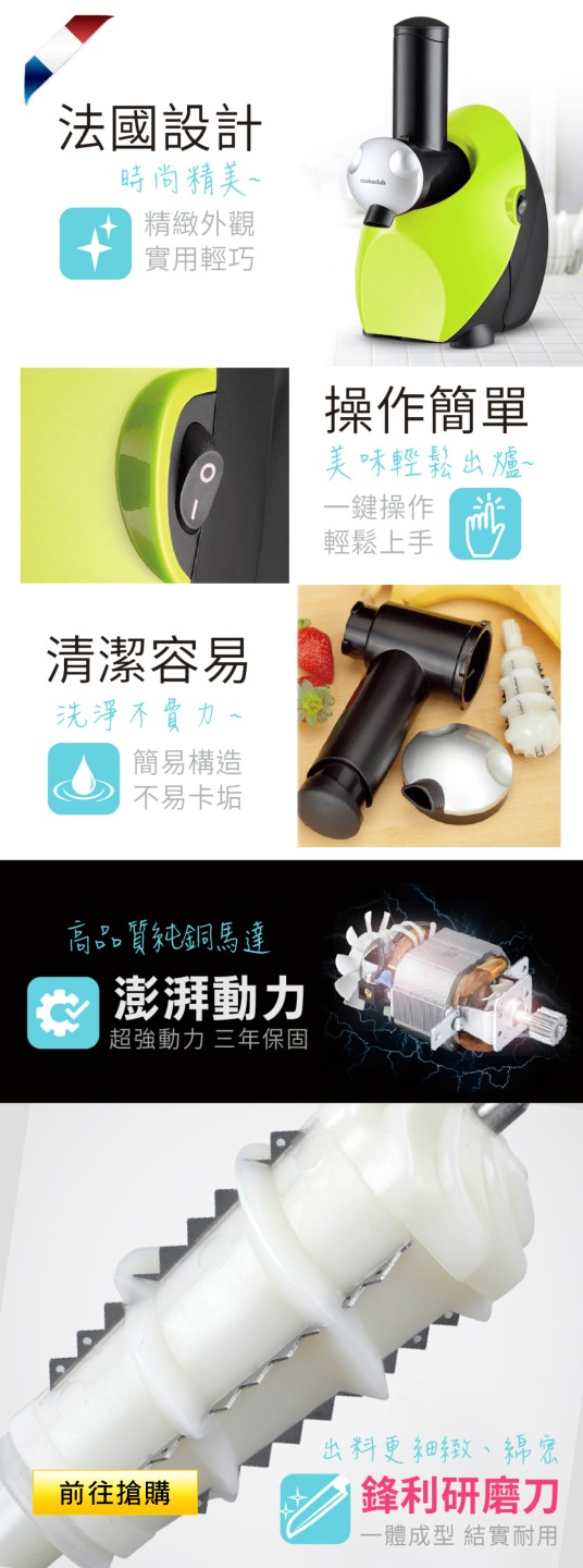 健康0添加!丟掉高熱量、人工添加物,美味水果冰淇淋1分鐘輕鬆做 2018-06-14 18:27:58 字級 大 中 小 ★澳洲品牌 法國設計 外觀時尚 ★快速製作 天然美味 水果冰淇淋 ★精緻實用 操作簡單 容易清潔 ★業界唯一 馬達壽命 三年保固 ★德國LFGB美國FDA歐洲CE 安全認證 閱讀更多神腦生活誌