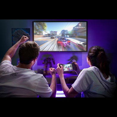 裝上Gamevice 遊戲控制器與 ASUS WiGig® 無線投影基座,ROG Phone就是一台可攜式遊戲機,實體案件加上大螢幕,玩起來就是超過癮