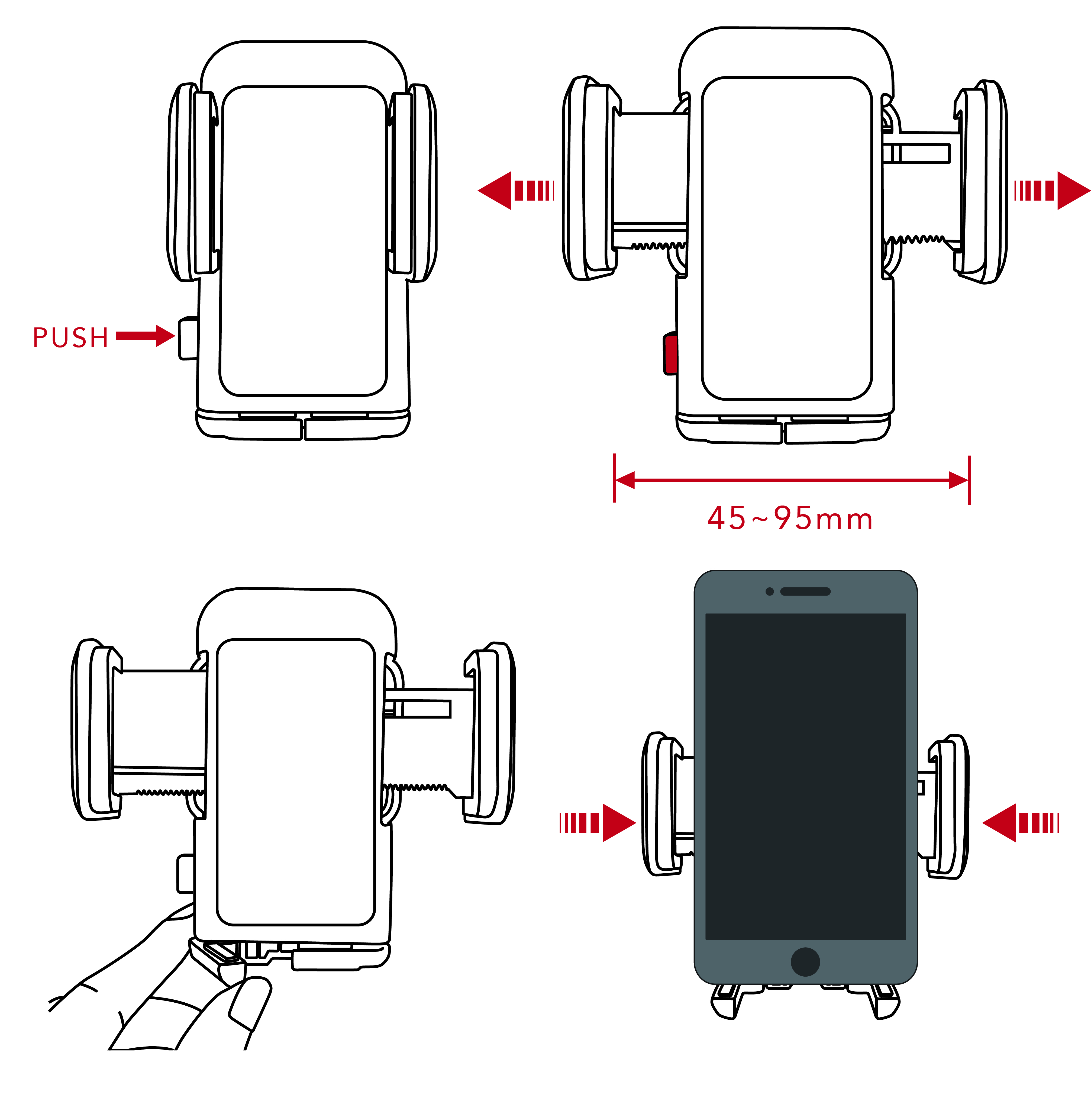 手機架最小寬度為45mm到最大可達95mm,適用於市面上絕大部分手機