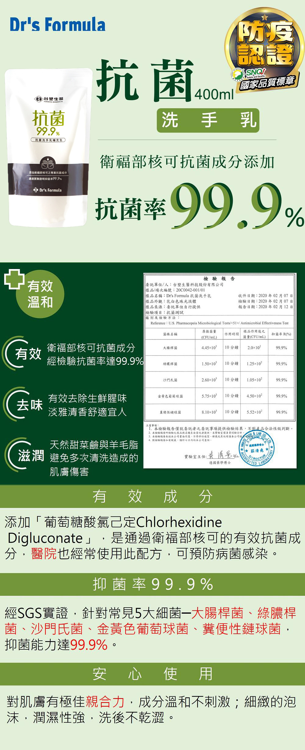 《台塑生醫》Dr‘s Formula抗菌洗手乳補充包400ml(24包)