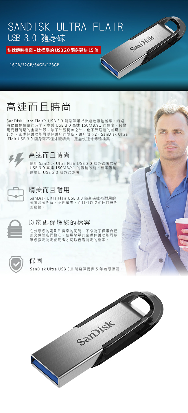 【SanDisk】128GB ULTRA FLAIR USB3.0 130MB/s 隨身碟 CZ73