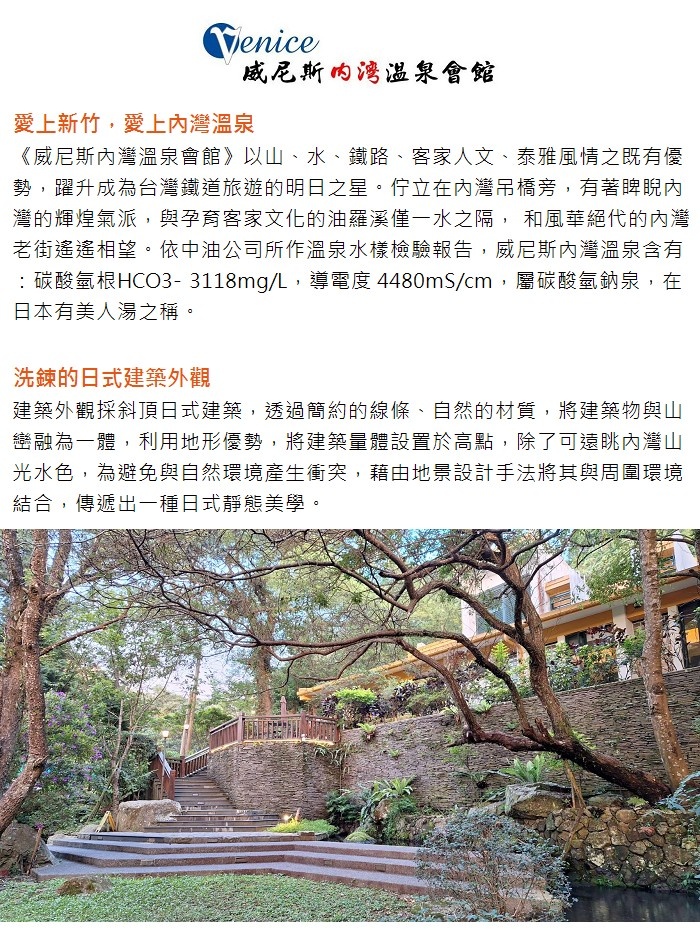 【新竹威尼斯內灣溫泉會館】雙人湯屋泡湯券