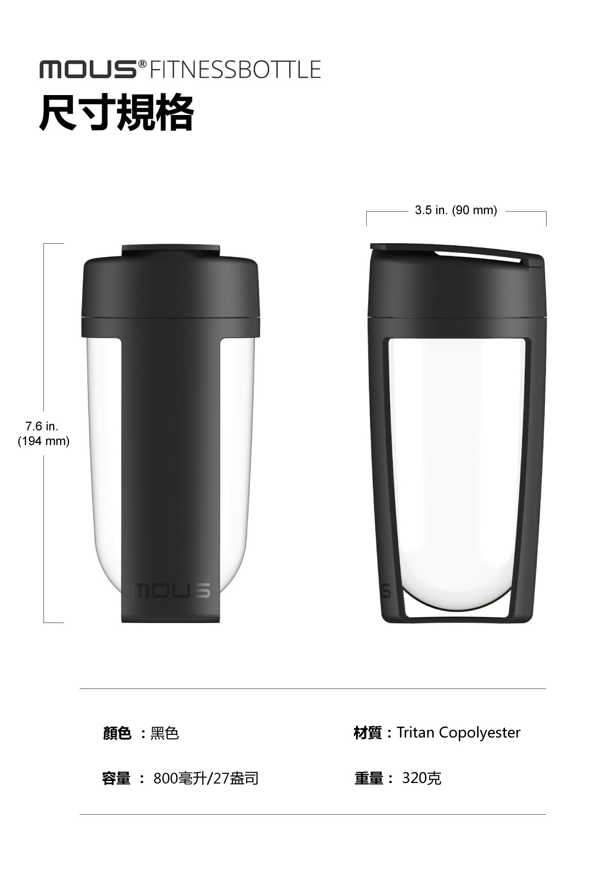 MOUS Fitness 運動健身搖搖杯 黑色