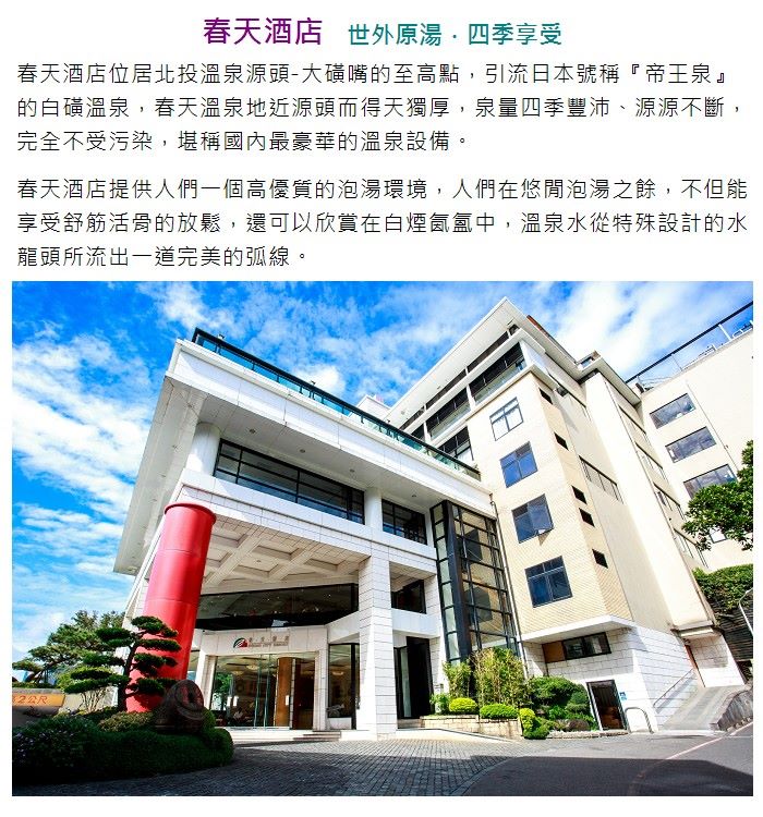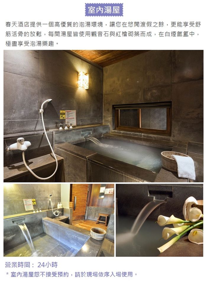 【北投-春天酒店】室內湯屋/露天風呂泡湯券