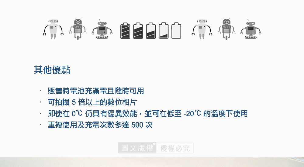 ◆ 購買後可立即使用,方便省事 ◆ 國際牌公司貨,日本原裝進口,可重複使用高達500次 ◆ 適用高耗電量產品,一年可維持85%有效電力 ◆ 環保節能、減碳高效能 ★贈電池盒