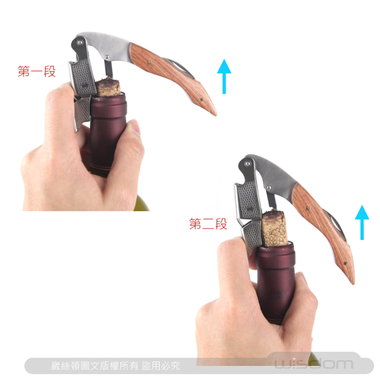 獨特兩段式紅酒開瓶設計,開瓶更輕鬆,也能避免瓶塞在開瓶時的破損