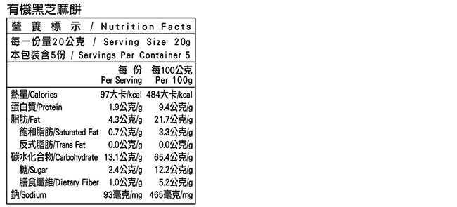【米森 vilson】有機黑芝麻餅(20g*5包/袋)_3入組