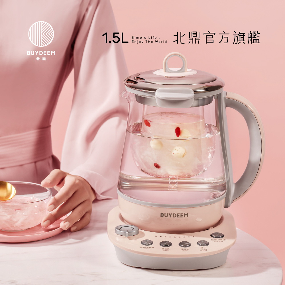 BUYDEEM北鼎玻璃養生快煮壺-粉漾美顏壼-旗艦全配版-K2691-茱萸粉
