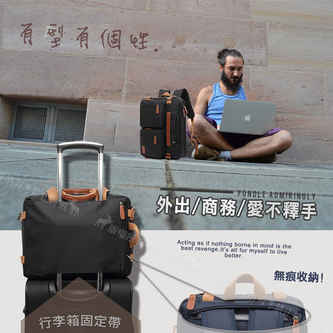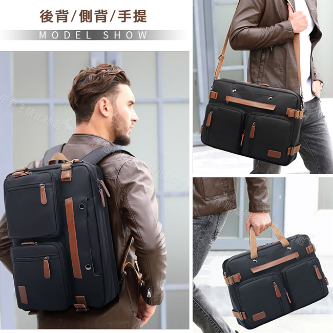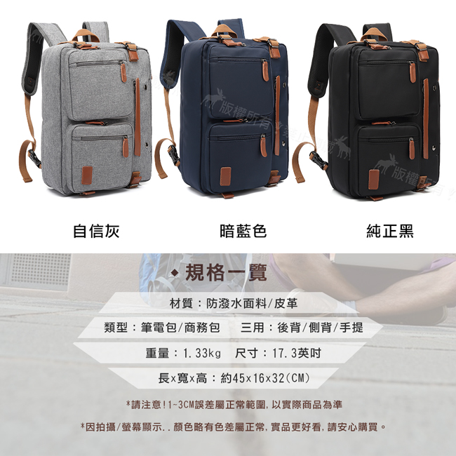 原創個性 雙料輕皮革 17.3吋 三用款手提包/側背包/後背包 平板筆電包