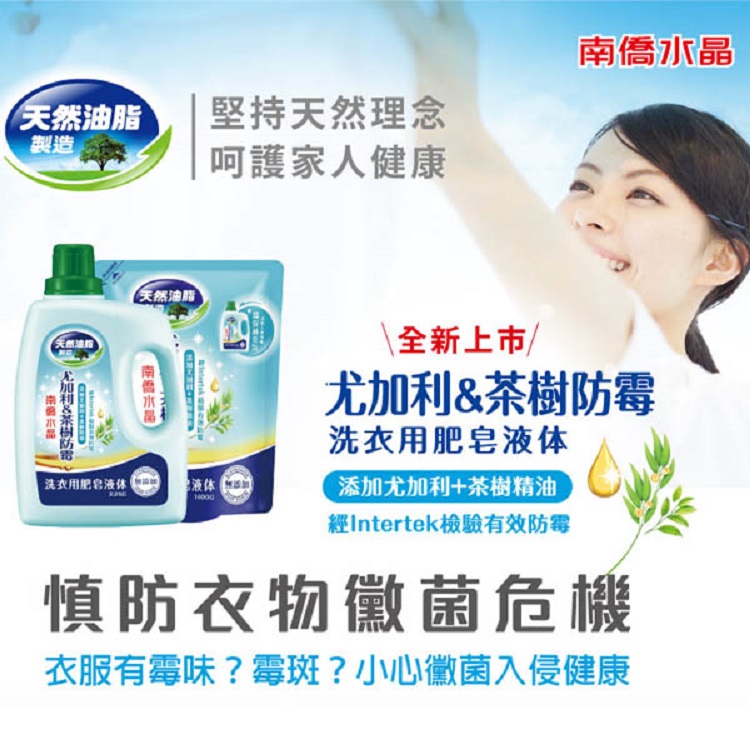 南僑水晶洗衣精補充包*6包 (百里香1400gX2尤加利茶樹1400gX2+葡萄柚籽1400gX2)