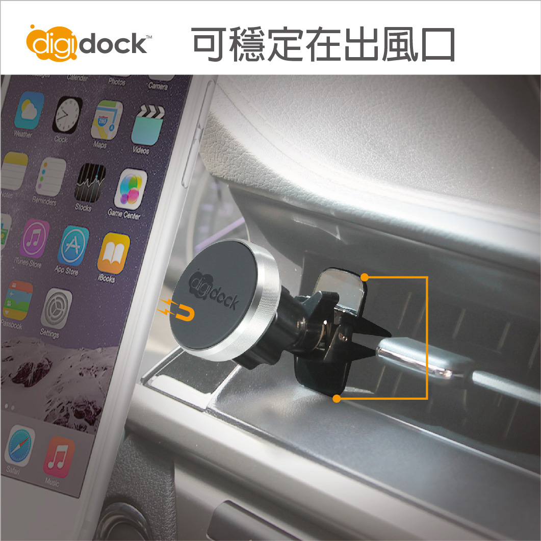 【digidock】Air Vent 出風口鎖式磁鐵鋁框手機車架 磁吸式手機架 冷氣出風口夾/汽車/支架 固定架 導航 GPS(AV-03MG-RS)