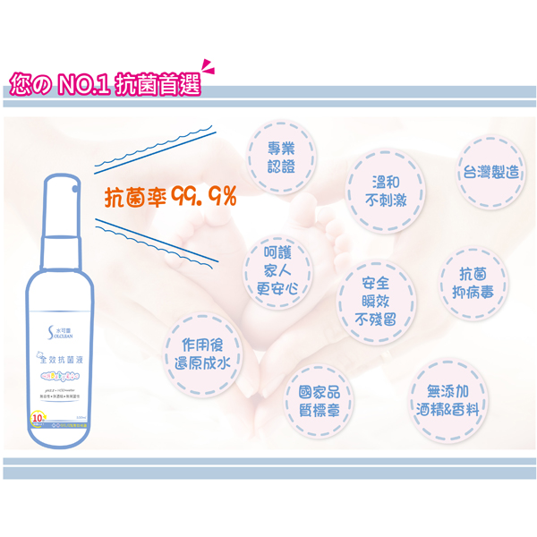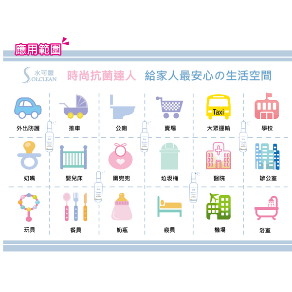 直接噴灑於欲消毒抗菌之表面,如:桌椅、地板、玩具、浴廁、垃圾桶等居家物品。噴灑後不需再沖洗
