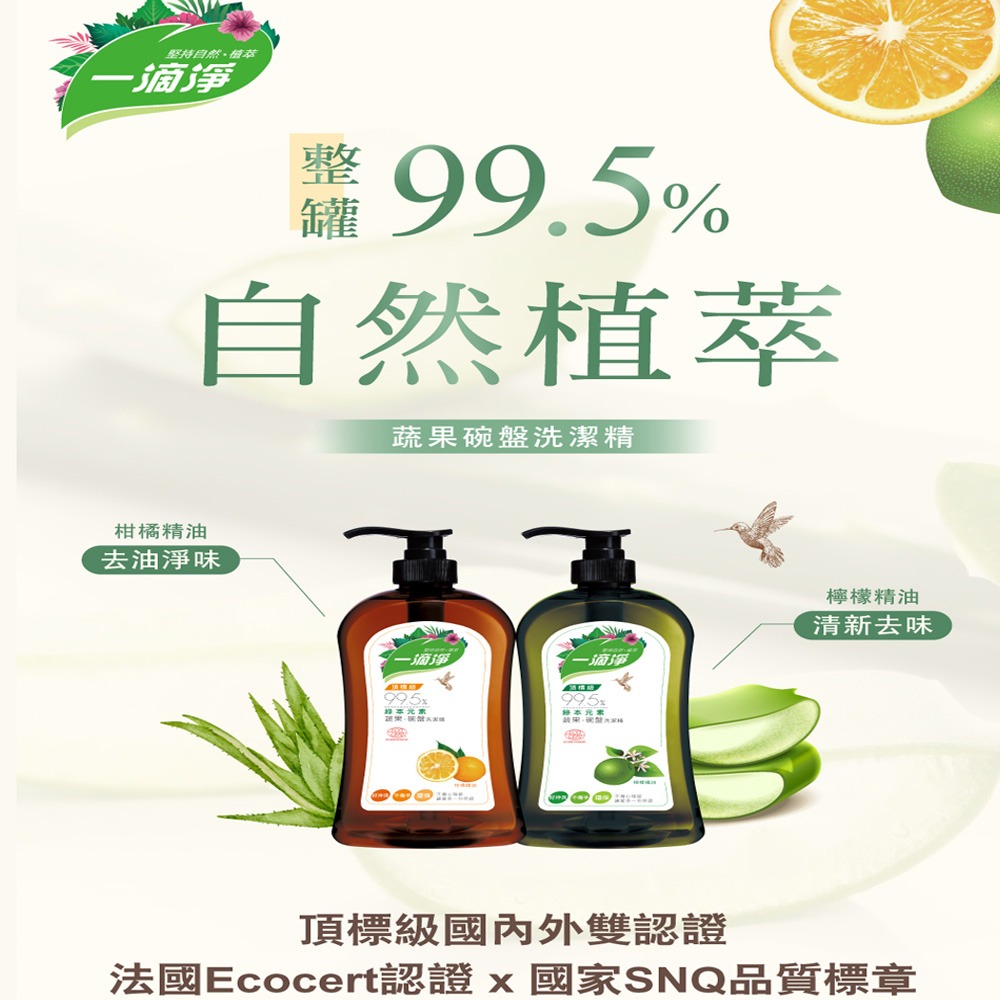 楓康一滴淨蘆薈多酚洗潔精-檸檬植萃1000g*12入