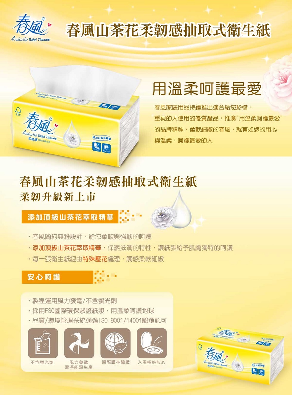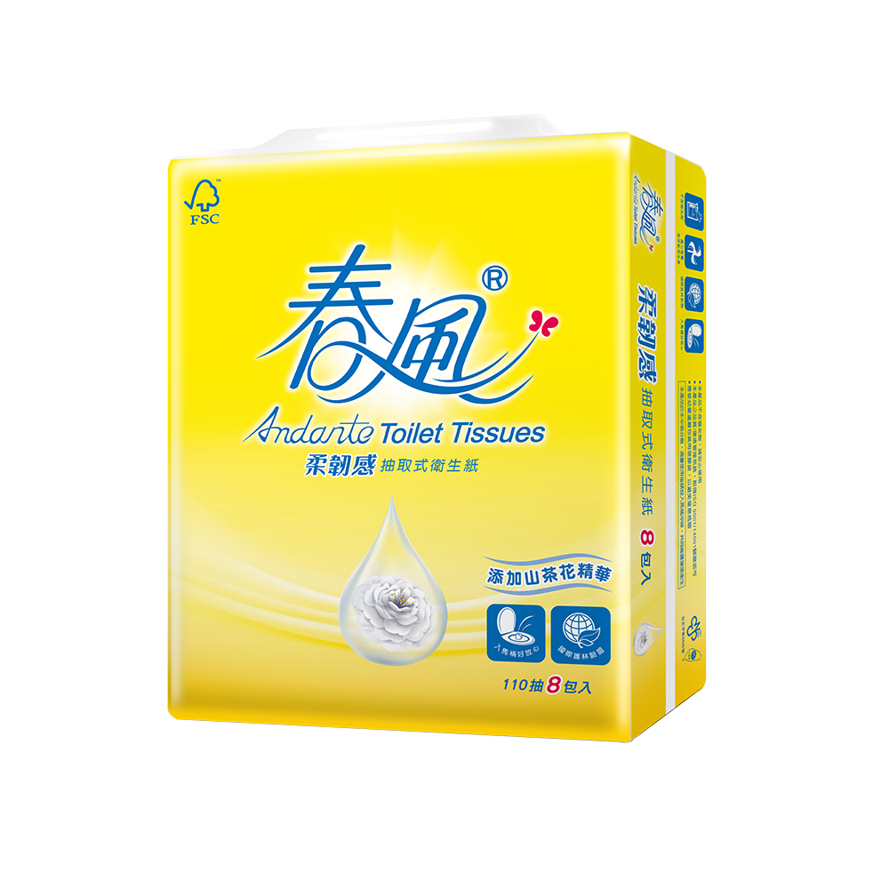 春風 山茶花柔韌感抽取衛生紙110抽*8包*8串/箱