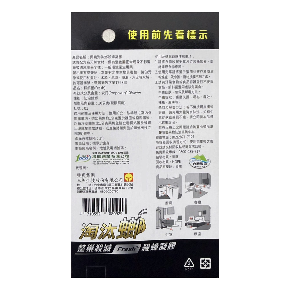 廠商名稱:炟坤數位有限公司 環境用藥販賣業許可執照字號:環藥販賣字第19-093號 許可證品名:鮮餌堡(Fresh) 環境用藥許可證字號:環署衛製字第1793號 製造商︰澄朗興業有限公司