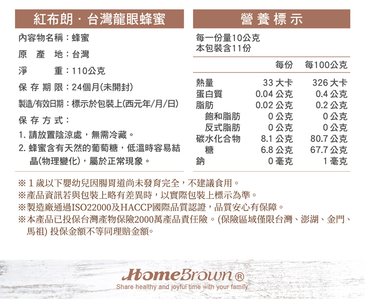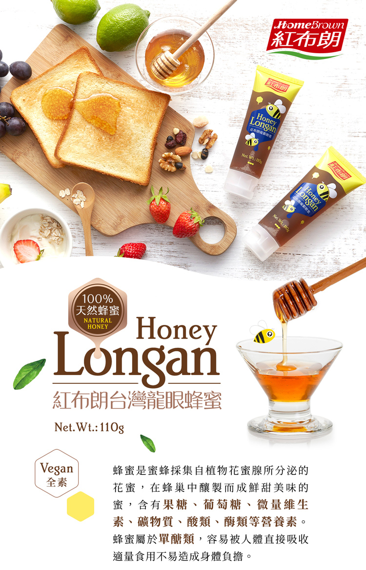 【紅布朗】台灣龍眼蜂蜜 110gX5瓶