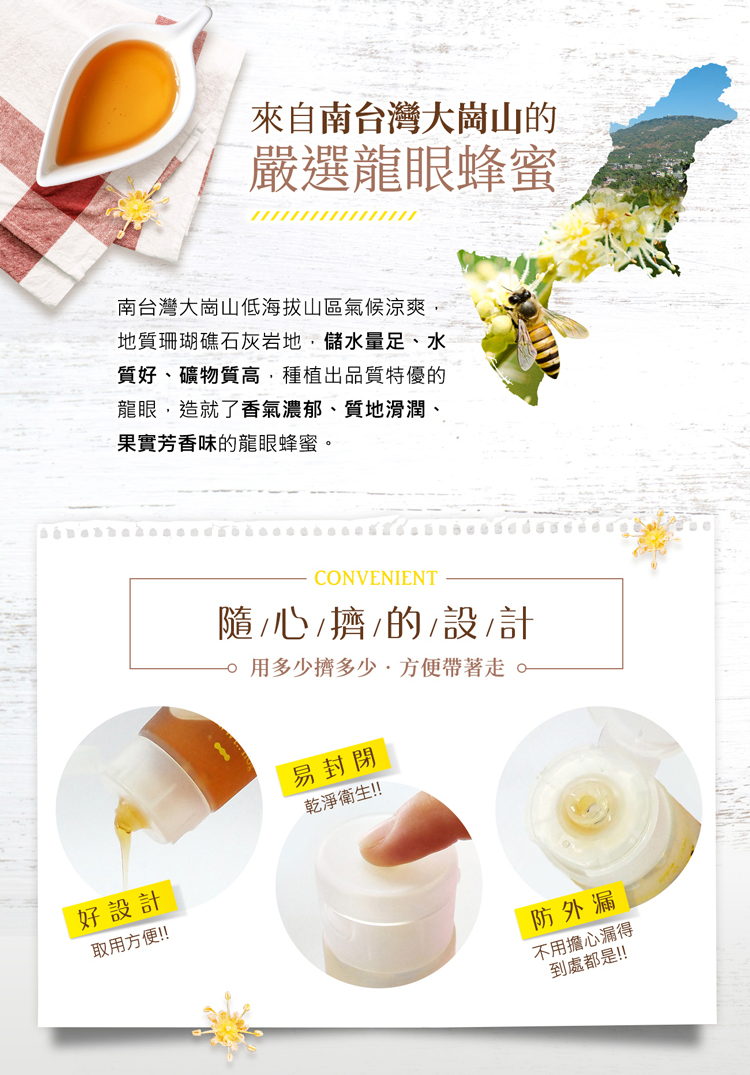 來自南台灣大崗山,嚴選100%台灣蜂蜜