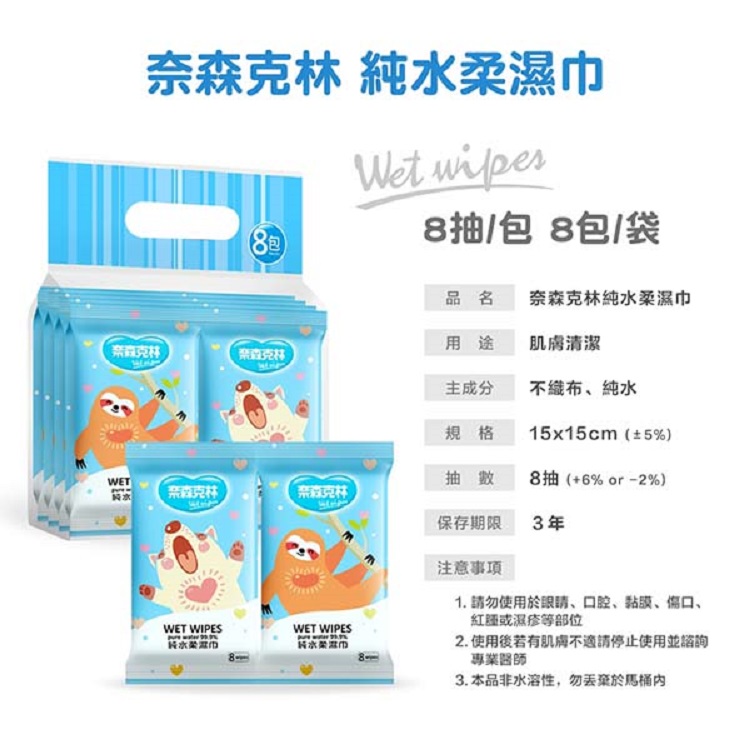 奈森克林純水柔濕巾8抽8包組 (歡樂動物版)X6袋(共48包)
