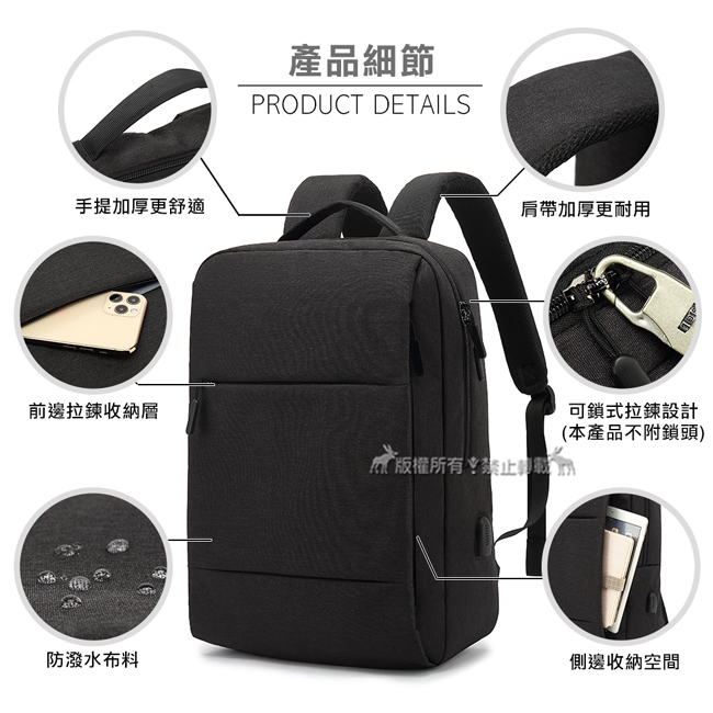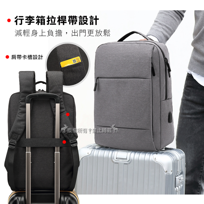 15.6吋 透氣多層 USB充電 休閒/時尚 防潑水平板筆電商務旅行後背包(沉穩黑)