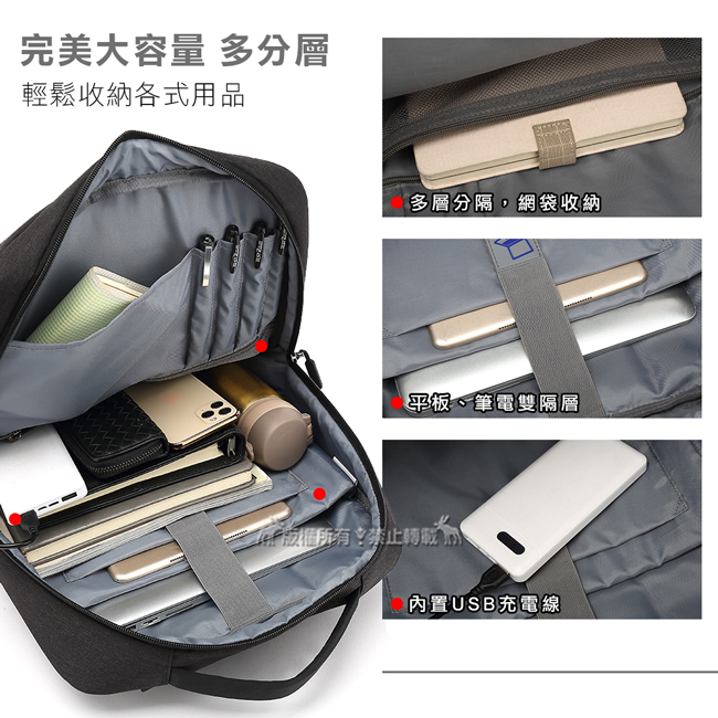 優質防潑水布料 小雨不用愁 多分層 大容量 出門更便利 外接USB孔設計 充電超方便 透氣背部 減負護脊
