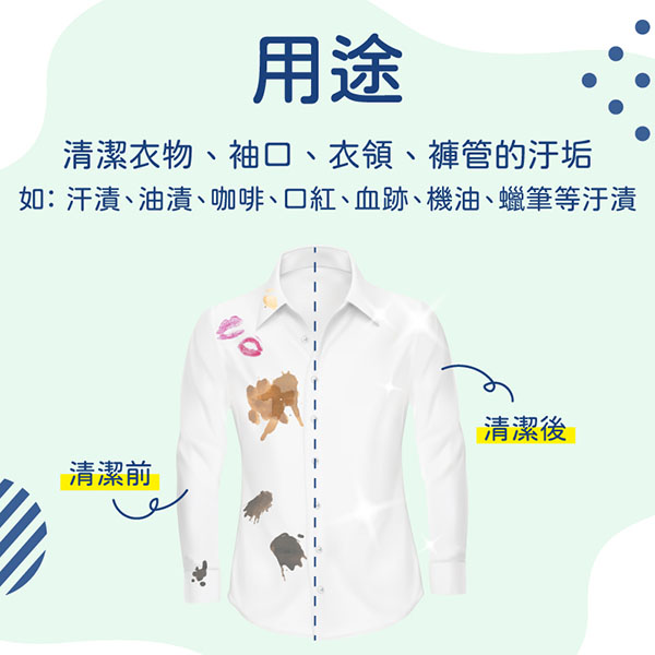 清潔衣物、袖口、衣領、褲管的汙垢,