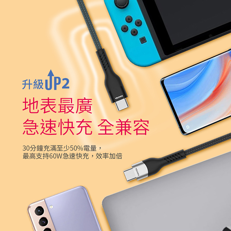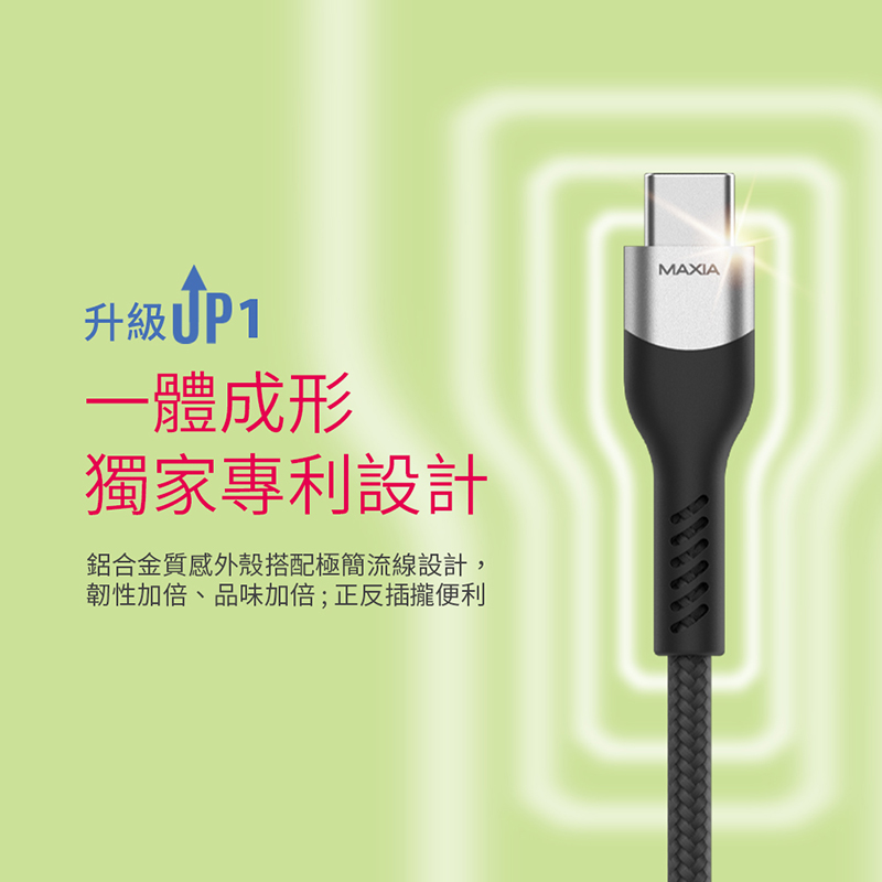 【MAXIA】USB C-C 編織快充數據線 1.5m /綠( MQC-300 )