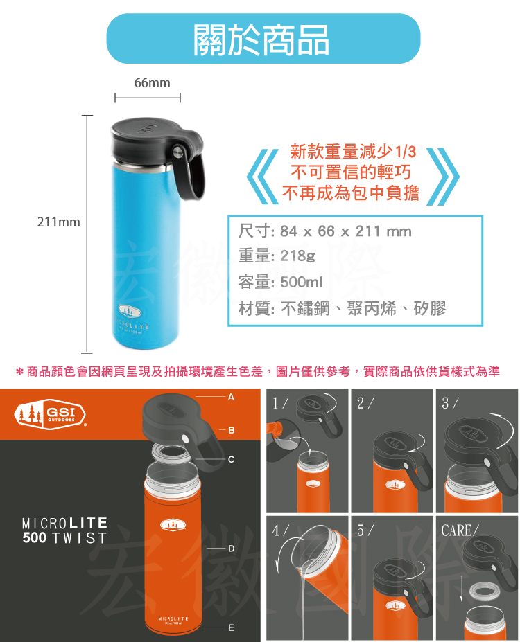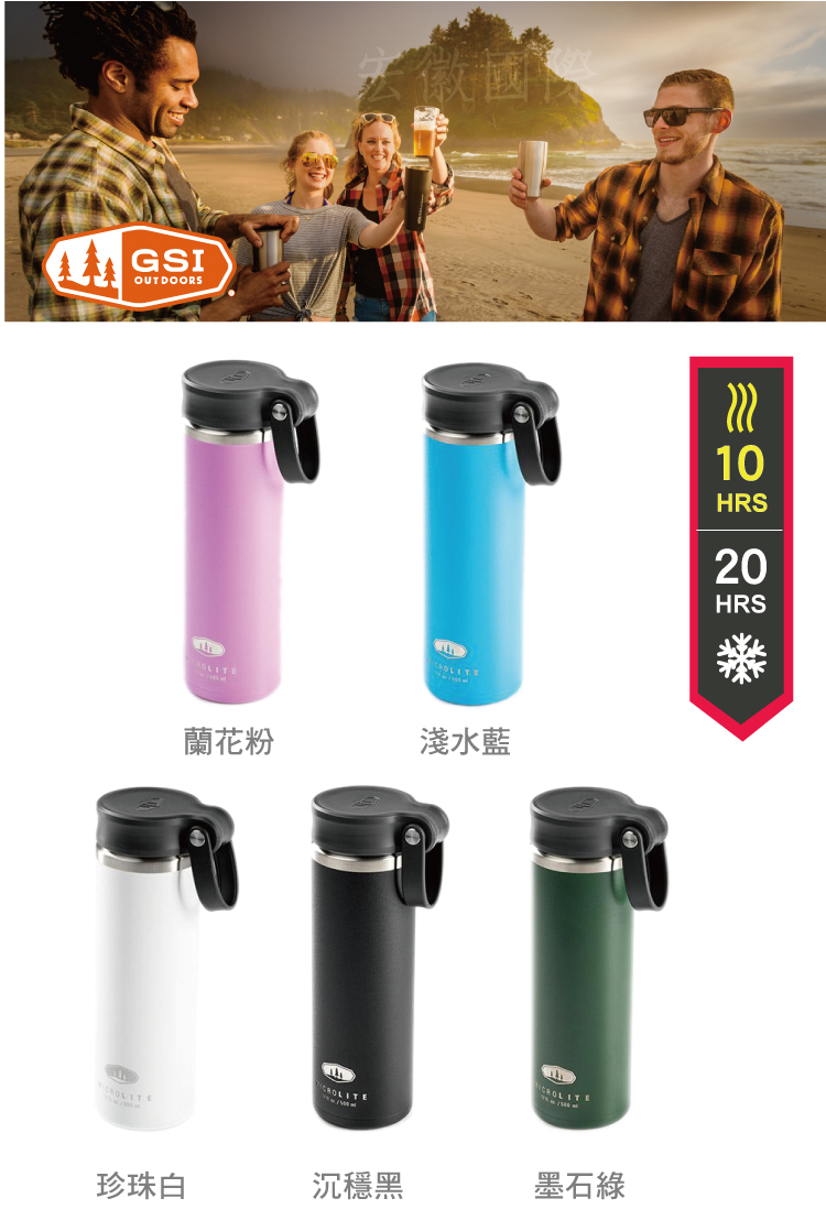 【美國GSI】輕量單手提環不鏽鋼保溫瓶-0.5L蘭花粉