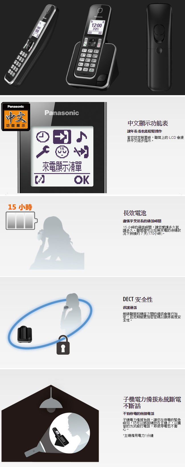 【贈音波電動牙刷】Panasonic 國際牌 KX-TGD312TW DECT數位無線電話