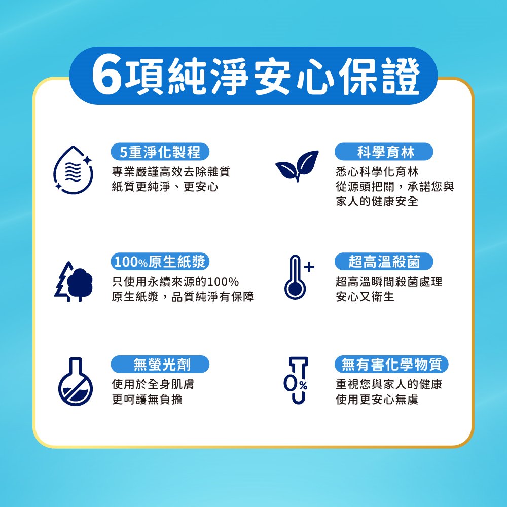 5重淨化、科學育林、原生紙漿、超高溫殺菌、無螢光劑、無有害化學物