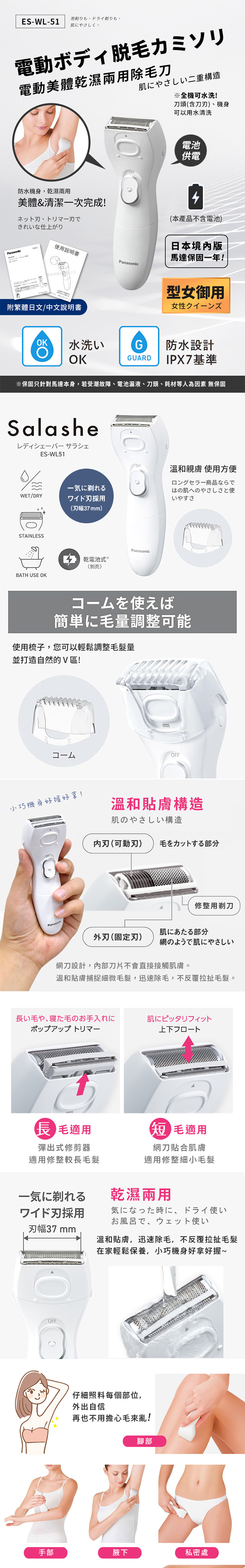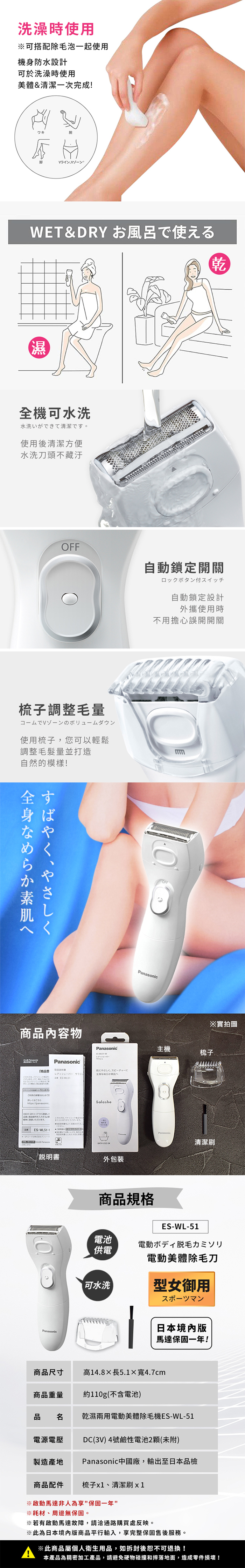 【日本國際牌Panasonic】乾濕兩用電動美體除毛機 除毛刀 得體刀-全機可水洗(附清潔刷+日文+繁體說明書)