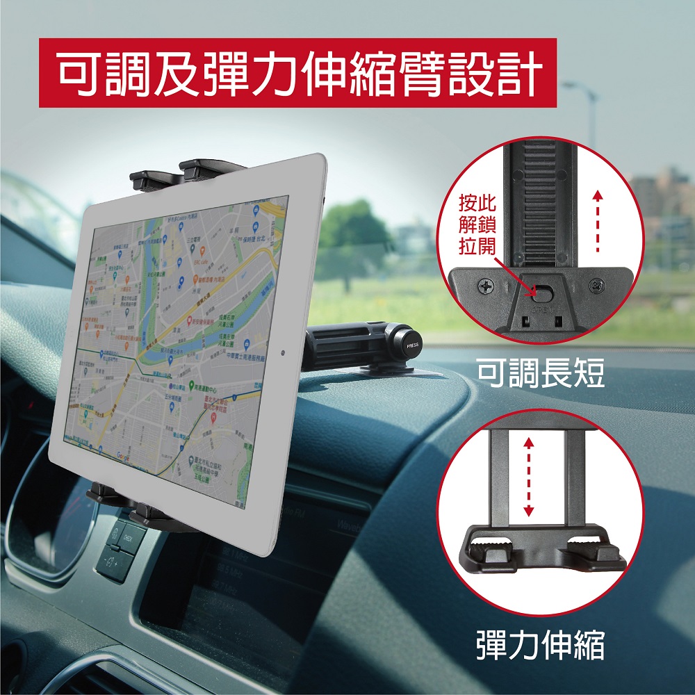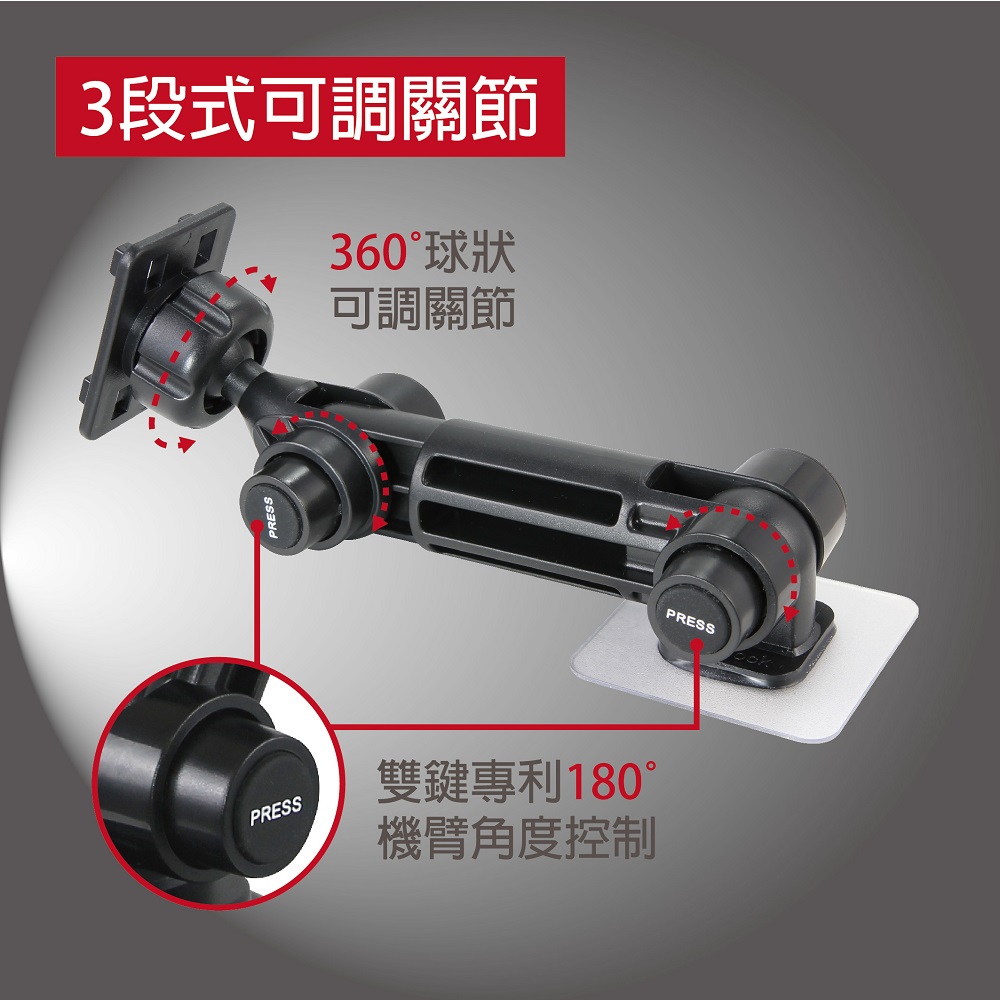 ●可調式按壓仰角專利關節設計,讓行駛中更加穩