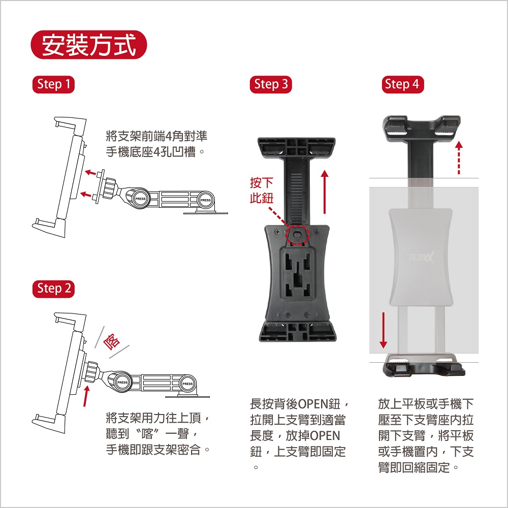 【CRUX】酷架 強力黏貼彈力夾式手機平板架 (RXST-10TP)