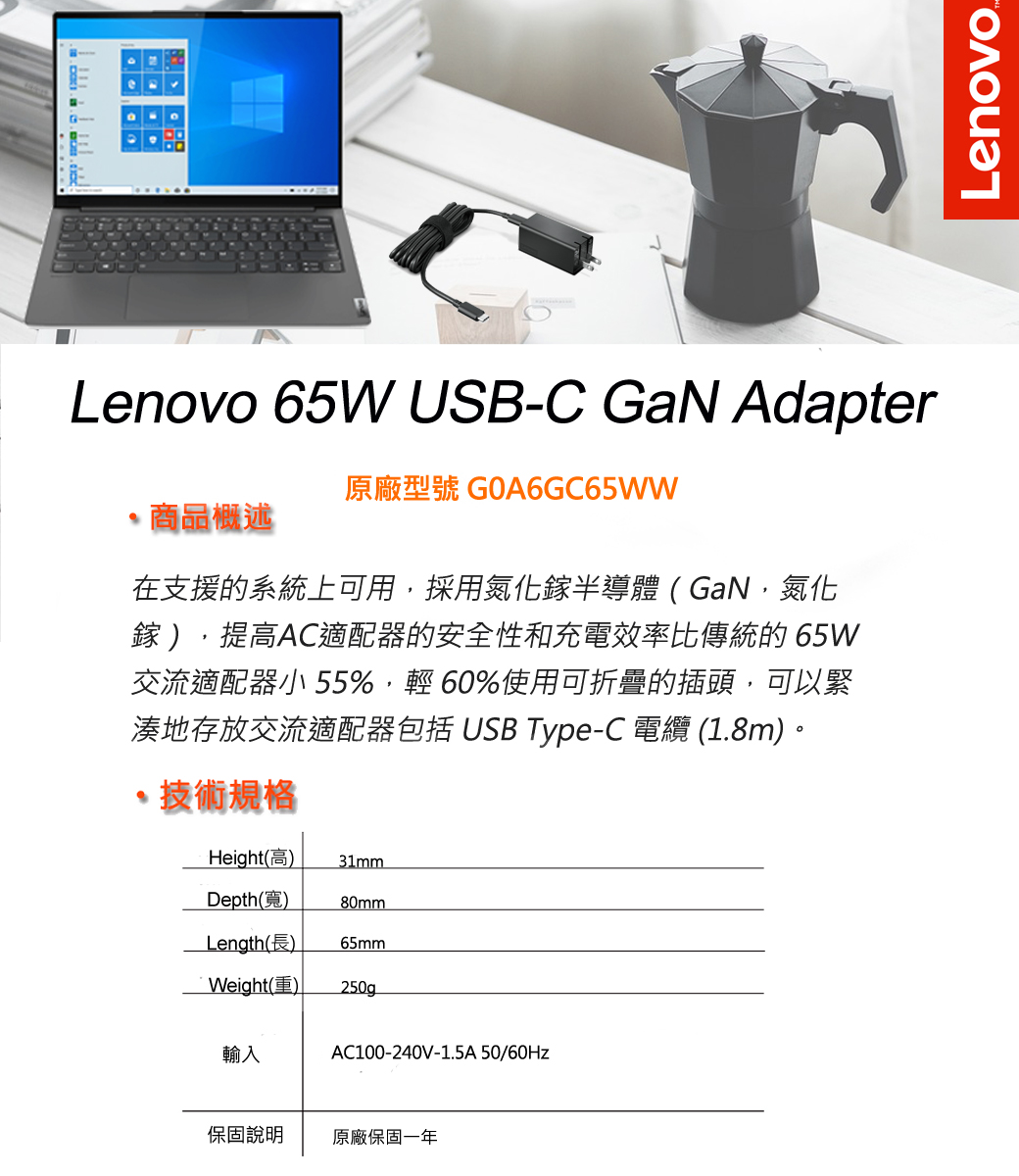 Lenovo 65W USB-C GaN Adapter (G0A6GC65WW)