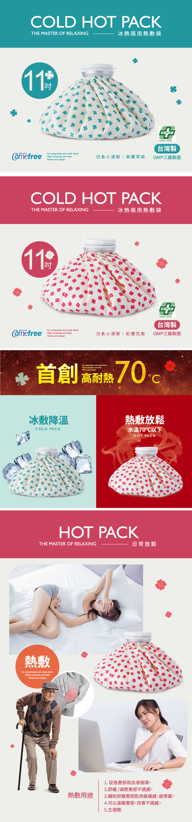 【Comefree】冰熱兩用敷袋(11吋-大)-2入-(幸運草+紅櫻花)