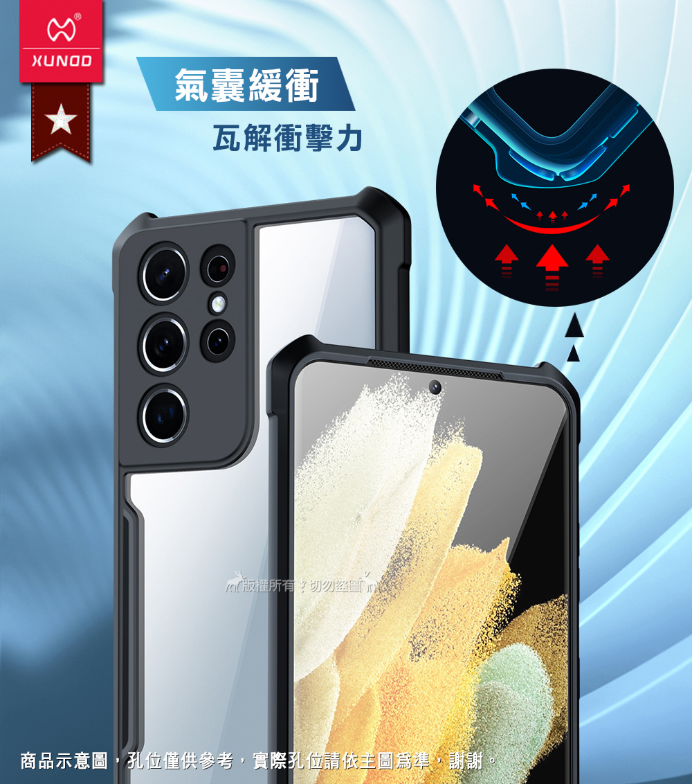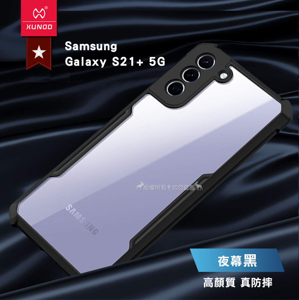 XUNDD 軍事防摔 三星 Samsung Galaxy S21+ 5G 鏡頭全包覆 清透保護殼 手機殼(夜幕黑)
