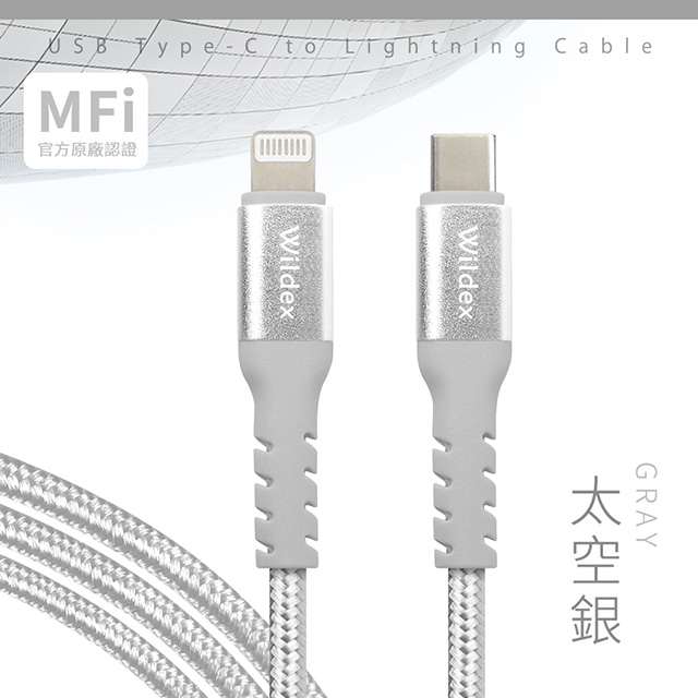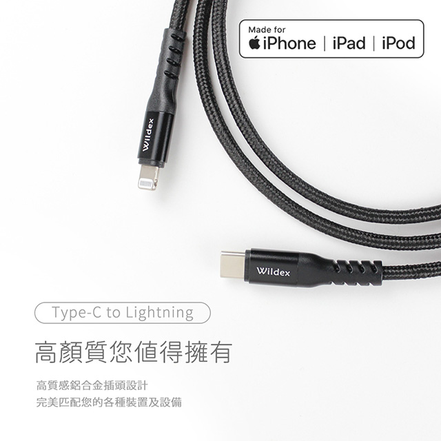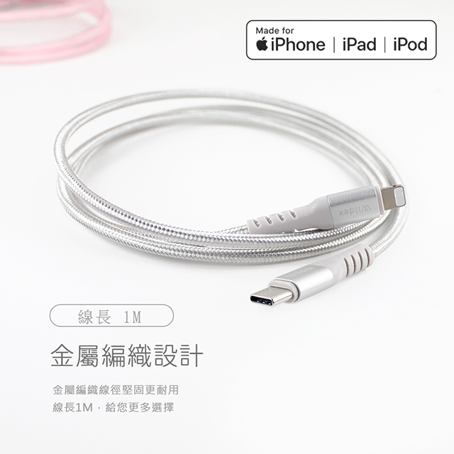 【Wildex】Type-C to Lightning 蘋果認證/金屬編織PD快充線/充電傳輸線(1M)