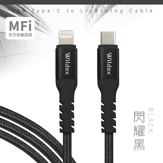 【超值二入】Wildex Type-C to Lightning 蘋果認證/金屬編織PD快充線/充電傳輸線(1M) 閃耀黑