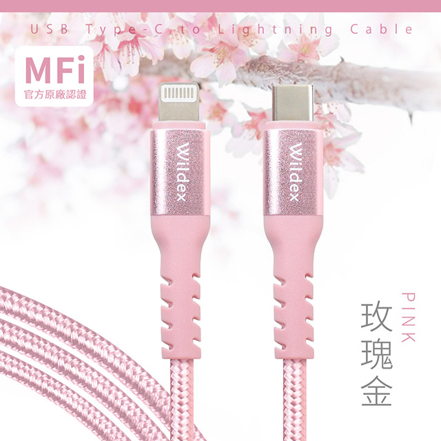 【Wildex】Type-C to Lightning 蘋果認證/金屬編織PD快充線/充電傳輸線(2M)