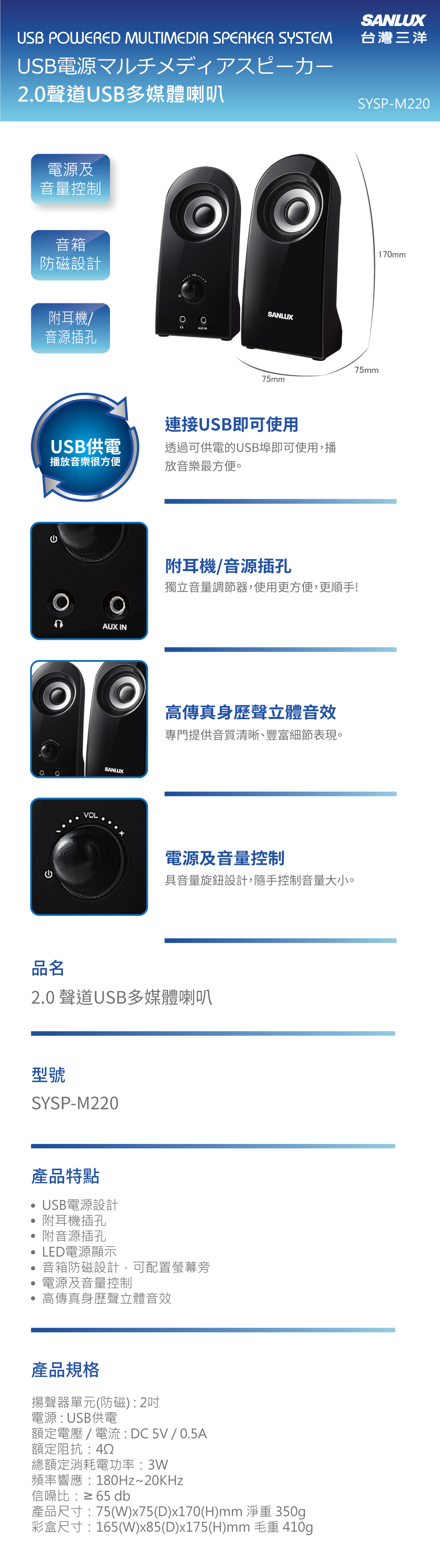 SANLUX台灣三洋 2.0聲道USB多媒體喇叭 SYSP-M220