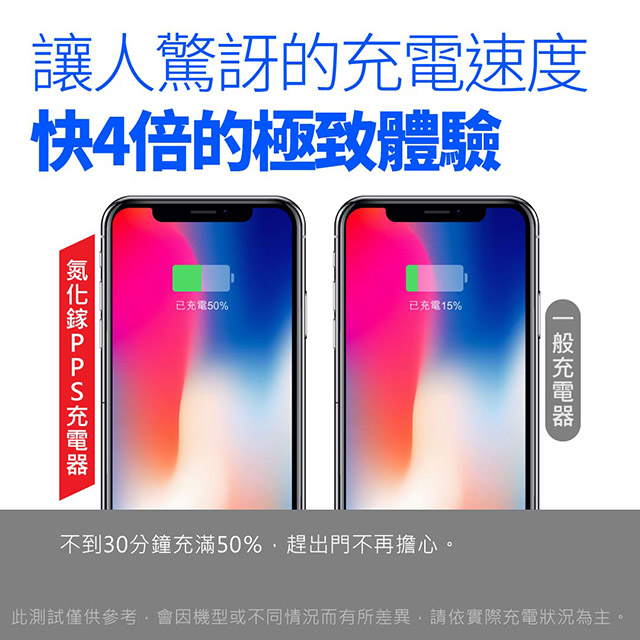 ◎ 支援蘋果最新USB-PD快充技術0%~50%緊要30分鐘