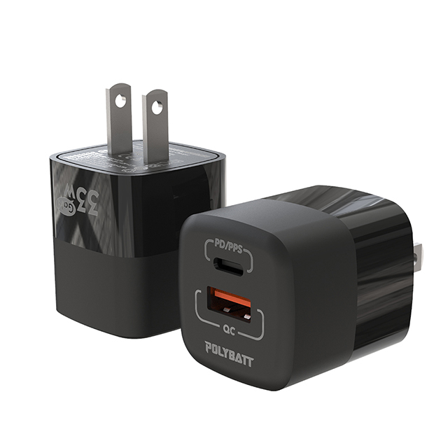 Polybatt GaN氮化鎵33W 雙孔PD+QC 手機平板筆電快速充電器(黑色)