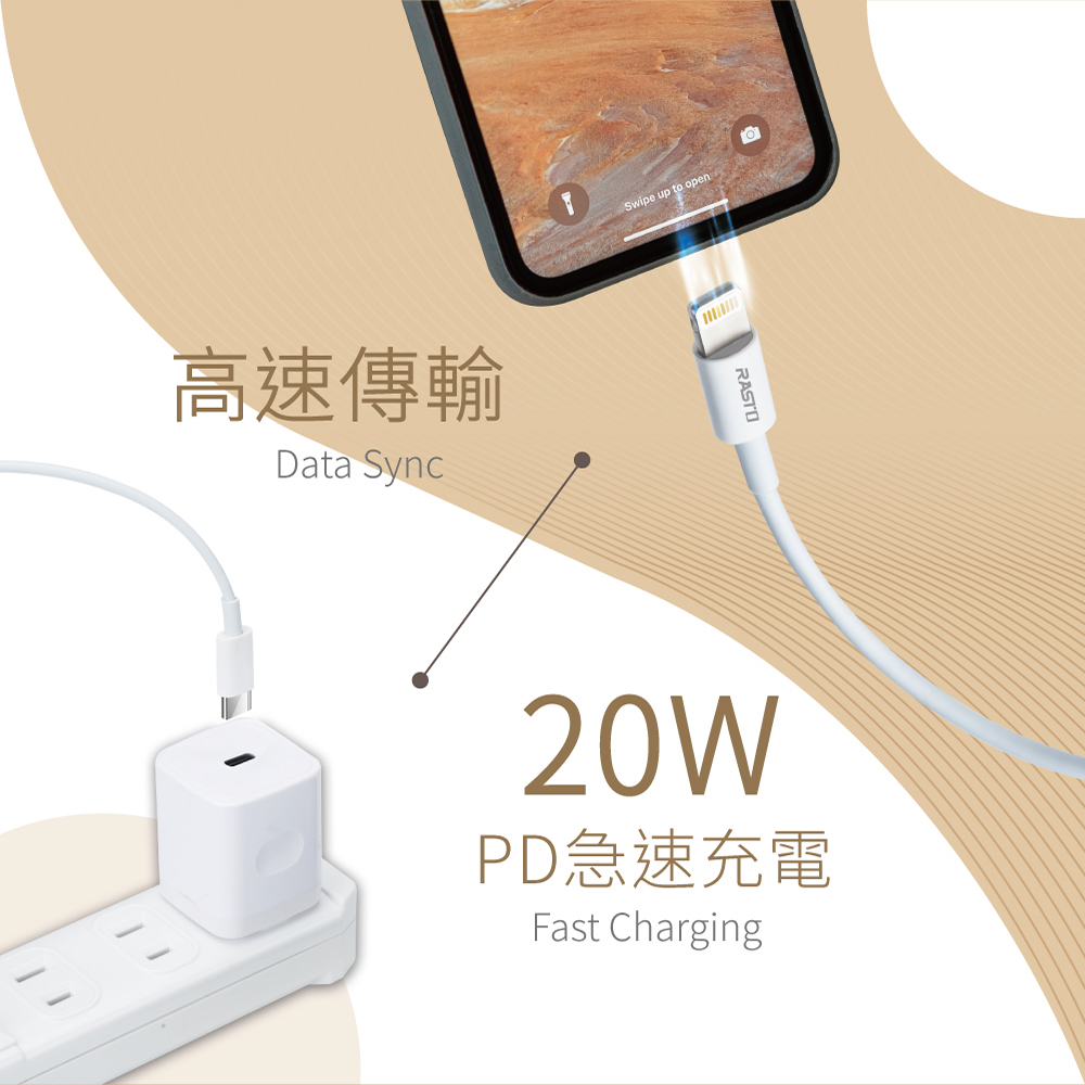RASTO RX43 蘋果Type C to Lightning快充傳輸線1.2M