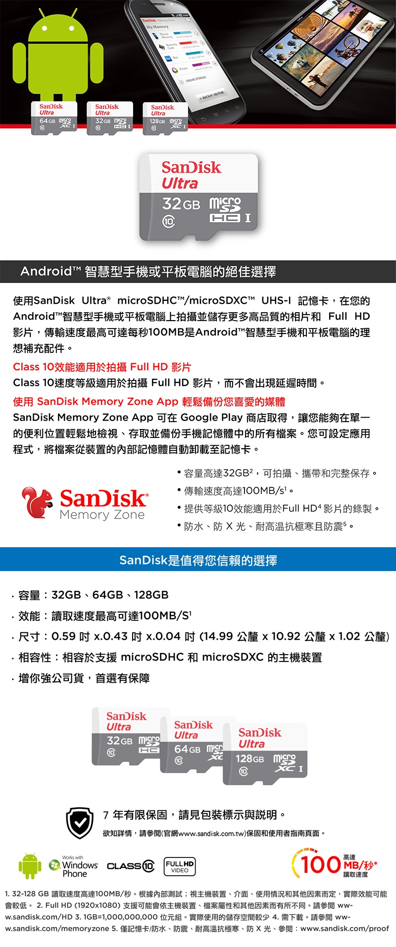 【SanDisk】Ultra 32GB microSDHC UHS-I 記憶卡(讀取達100MB/s)