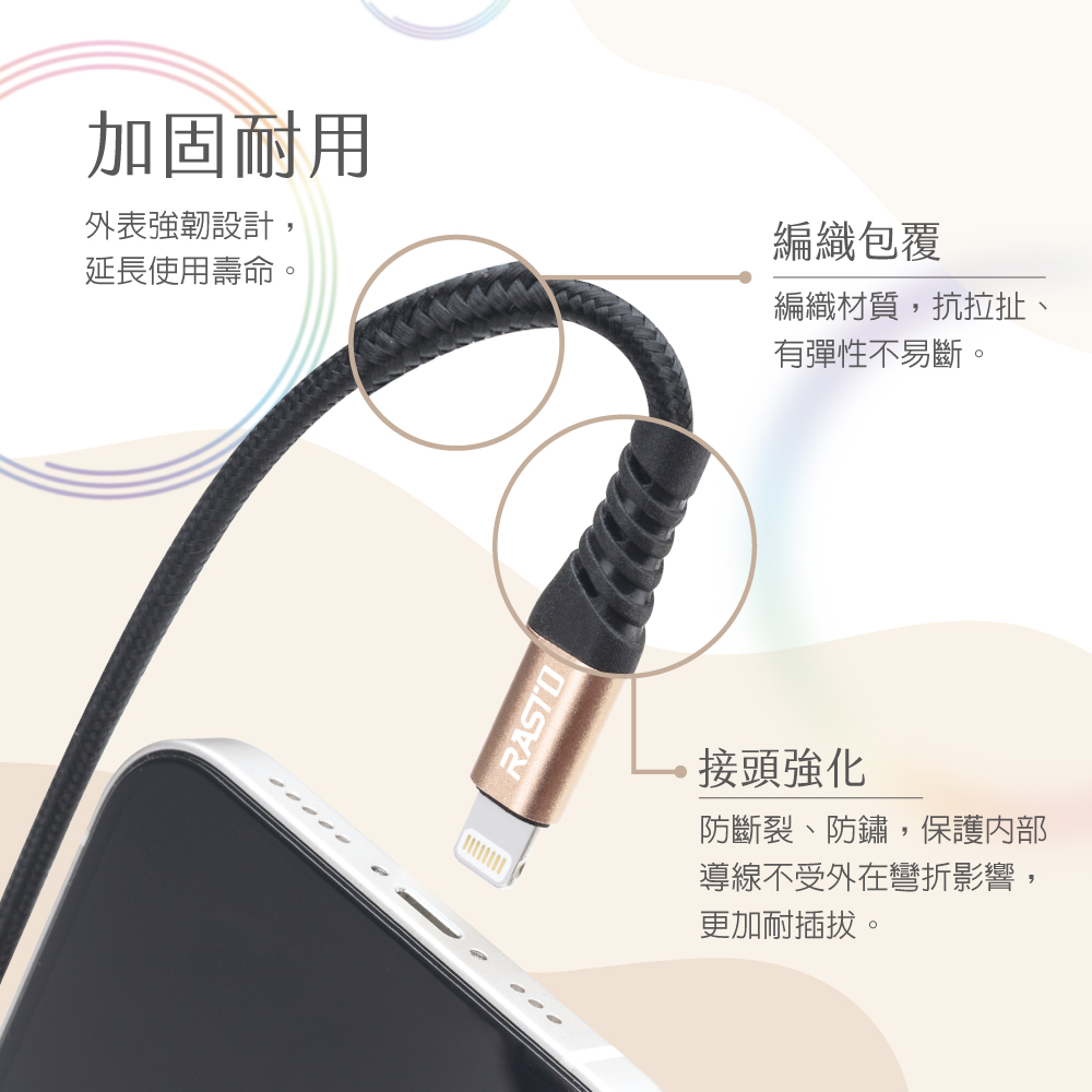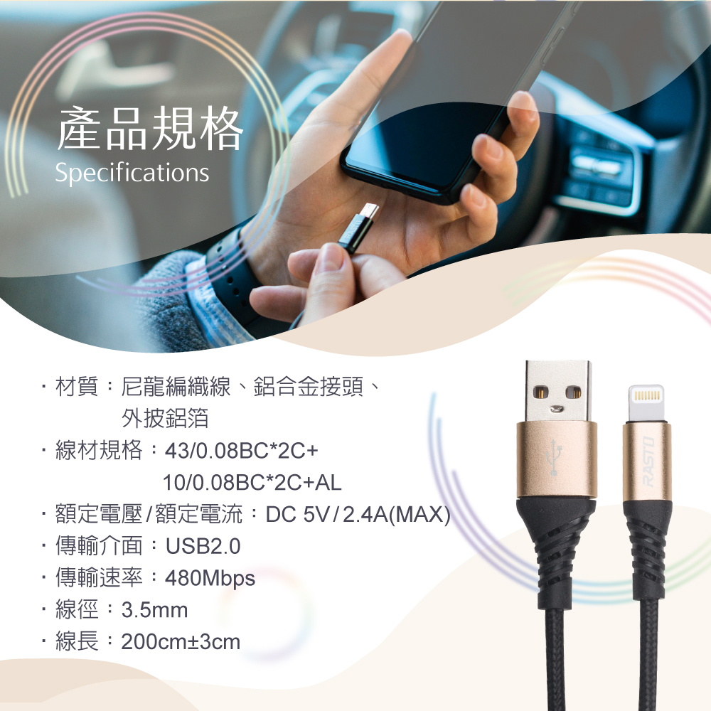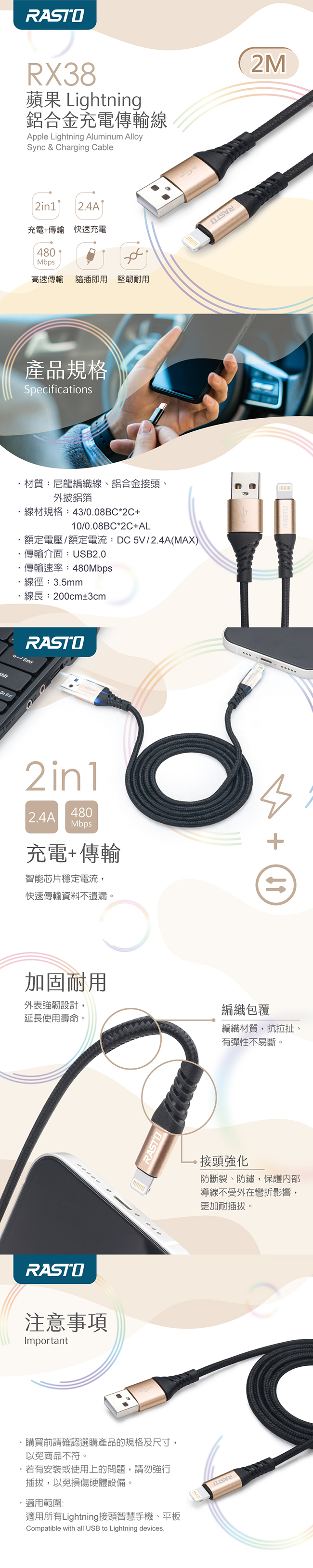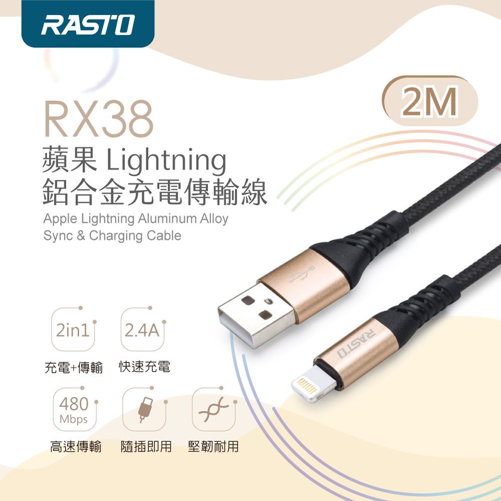 RASTO RX38 蘋果Lightning 鋁合金充電傳輸線2M