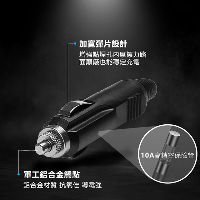 ◎ 加寬彈片設計:增強點煙孔內摩擦力,路面顛簸也能穩定充電