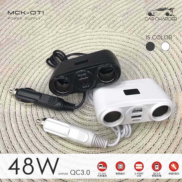 台灣製造 QC3.0極速48W車用電源雙擴充器/車充(2孔USB、2孔點煙孔)MCK-QT1