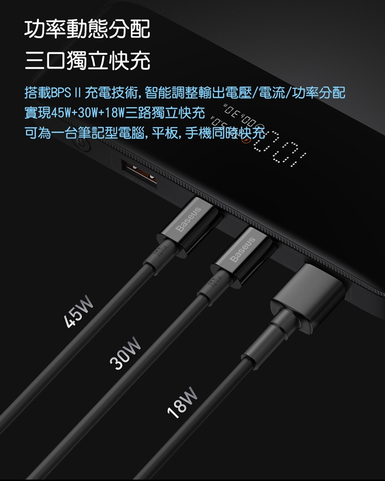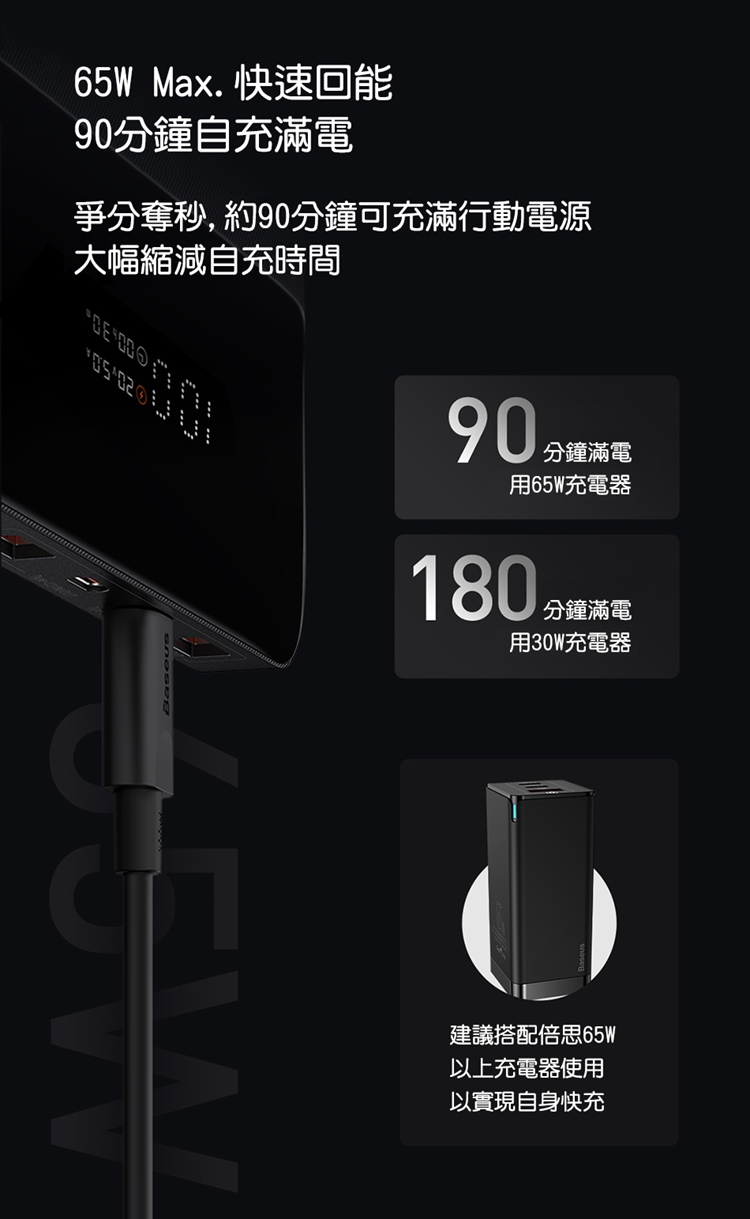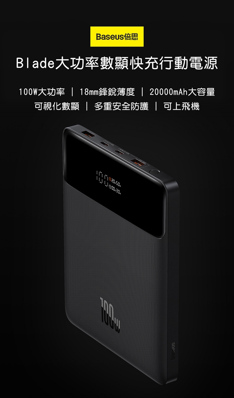 Baseus倍思 布雷德數顯快充行動電源20000mAh PPBLD100