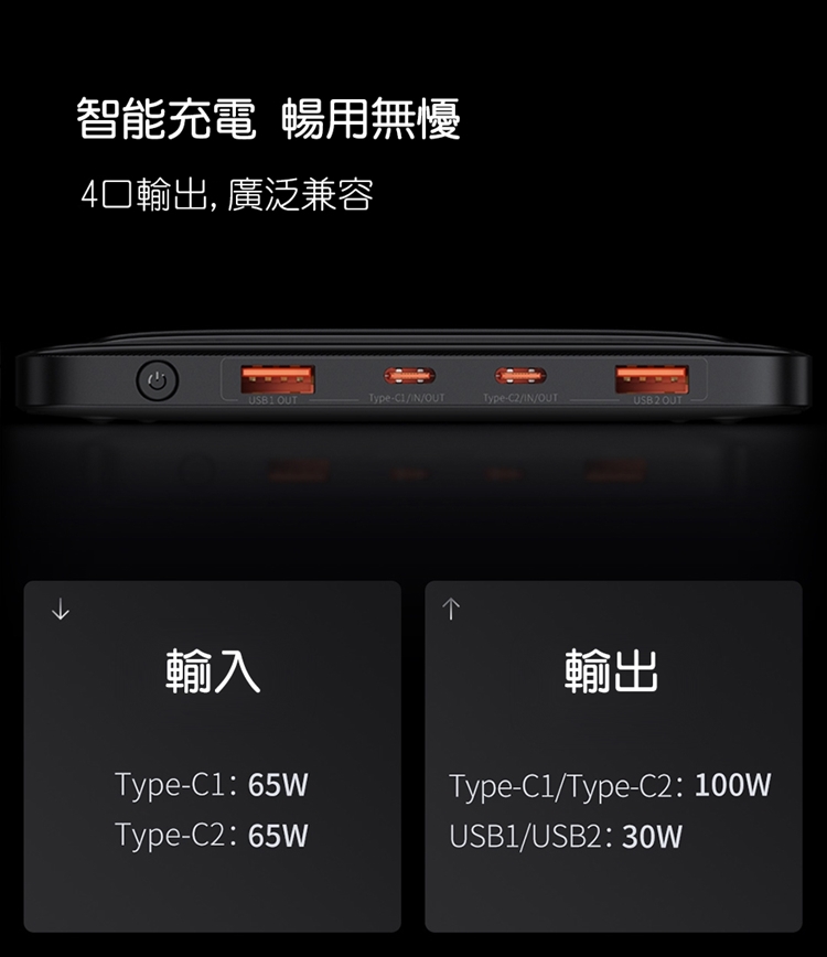 Type-C1/Type-C2+USB1/USB2輸出: