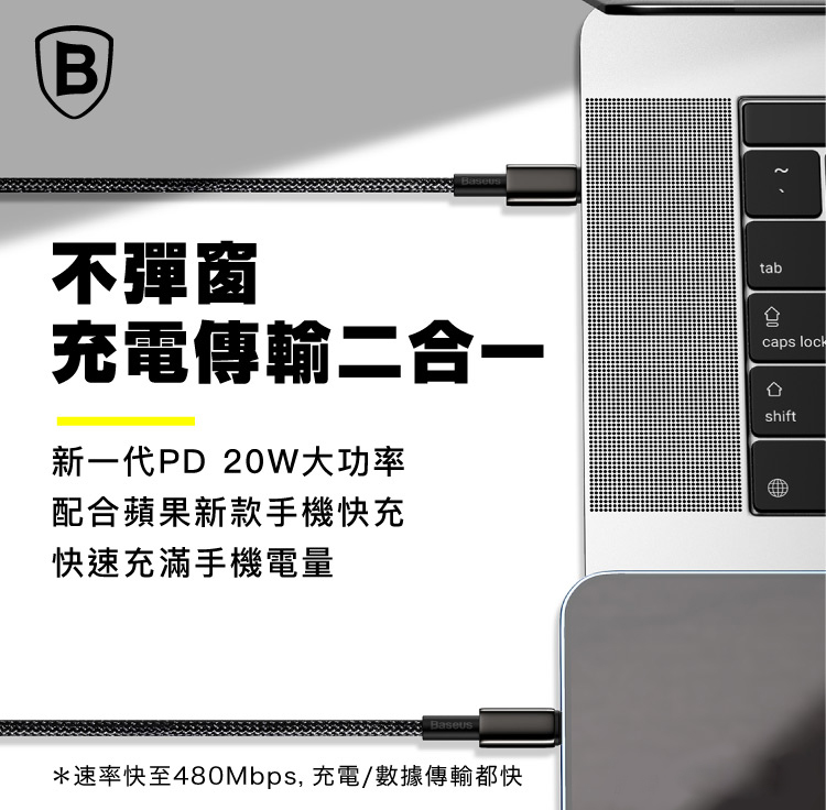 Baseus倍思 鎢金 PD Type-C to Lightning 快充傳輸充電線(20W)iPhone/iPad系列快充-200cm